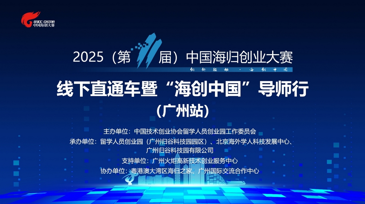 5月14日,2025(第11屆)中國海歸創(chuàng)業(yè)大賽線下直通車暨“海創(chuàng)中國”導(dǎo)師行(廣州站)活動在廣州歸谷科技園成功舉辦。本次活動由中國技術(shù)創(chuàng)業(yè)協(xié)會留學(xué)人員創(chuàng)業(yè)園工作委員會主辦,留學(xué)人員創(chuàng)業(yè)園(廣州歸谷科技園園區(qū))、北京海外學(xué)人科技發(fā)展中心、廣州歸谷科技園有限公司承辦,廣州火炬高新技術(shù)創(chuàng)業(yè)服務(wù)中心支持,粵港澳大灣區(qū)海歸之家、廣州國際交流合作中心協(xié)辦。留創(chuàng)園工委會產(chǎn)業(yè)與投資促進部部長寶玥、廣州火炬高新技術(shù)創(chuàng)業(yè)服務(wù)中心副主任劉斌、廣州國際交流合作中心主任郭慧青、廣州歸谷科技園科技商務(wù)部總經(jīng)理曹江鵬等出席活動。